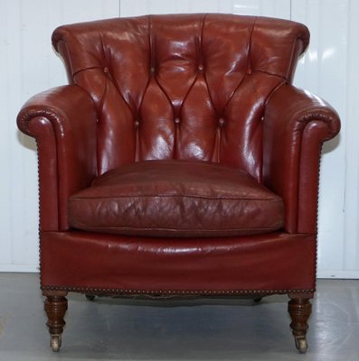 Details About Chesterfield Low Back Club Chair Armchair Antique Oxblood Red Leather - View Full