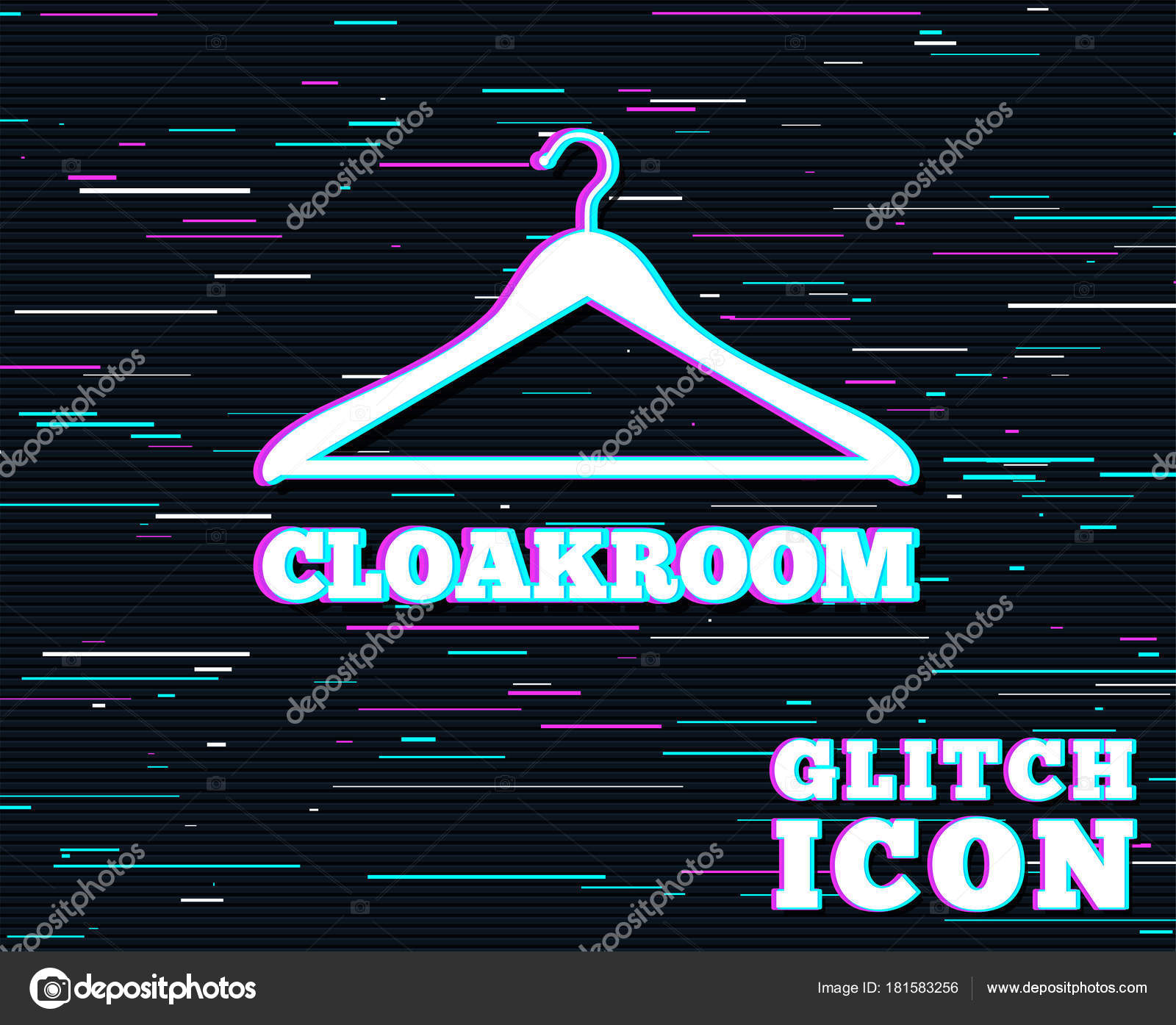 Glitch Effect Cloakroom Sign Icon Hanger Wardrobe Symbol - View Full