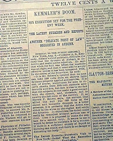 Details About 1st Electric Chair Execution 1st Person Murderer William Kemmler 1890 Newspaper - View Full