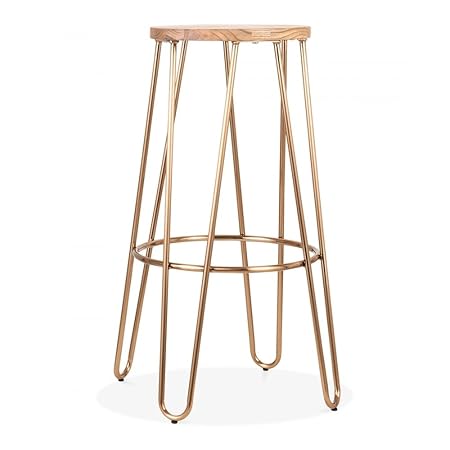 Cult Living Hairpin Metal Bar Stool Solid Elm Wood Brass - View Full