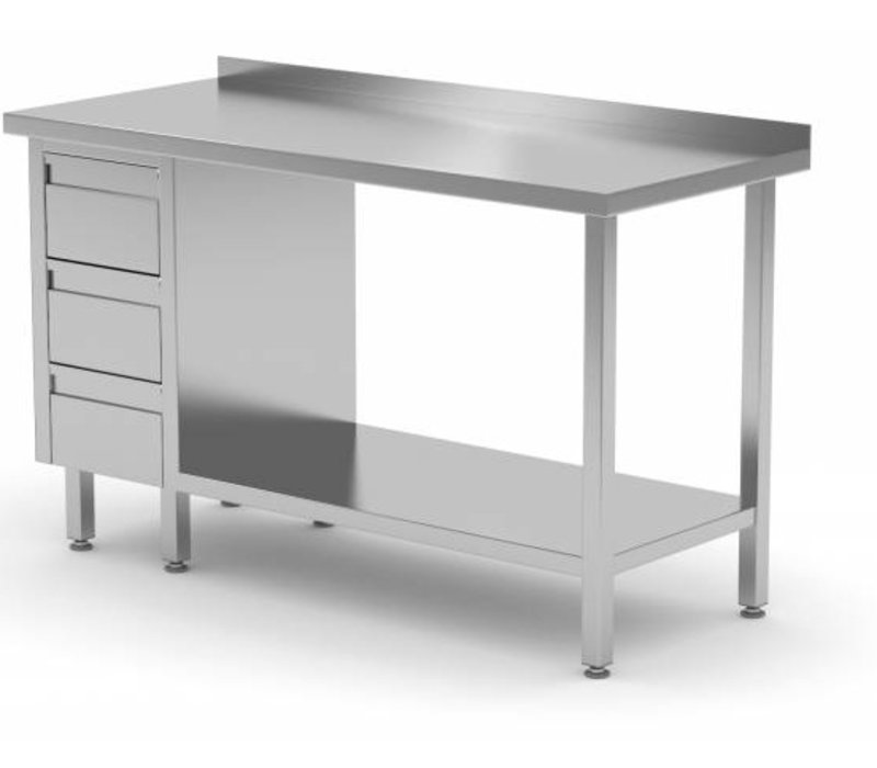 Xxlselect Stainless Steel Worktable Drawer Unit Left 3 Drawers Bottom Shelf Splash Rand 800 B X600 D Mm Choice Of 12 Widths - View Full