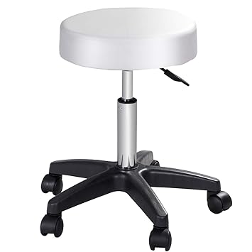 Tenozek Rolling Stool With Wheels Swivel Stool Message White Drafting Spa Stool With Back Adjustable Salon Stool Lash Stool Dentist Chair Round Shape - View Full
