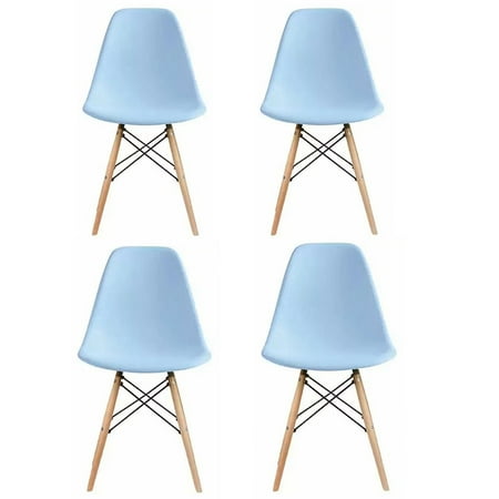 Magshion Eames Wooden Eiffel Legs Dinning Chairs Plastic Side Chair Set Of 4 Blue - View Full