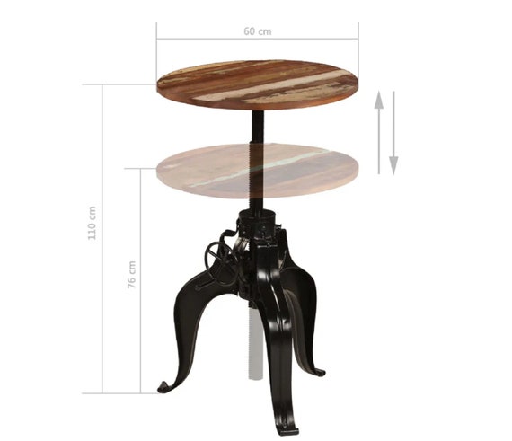 Industrial Bar Table Vintage Kitchen Breakfast Furniture Rustic Reclaimed Wood Adjustable Side Round Metal Retro Tall Dining Bistro Cafe Pub - View Full