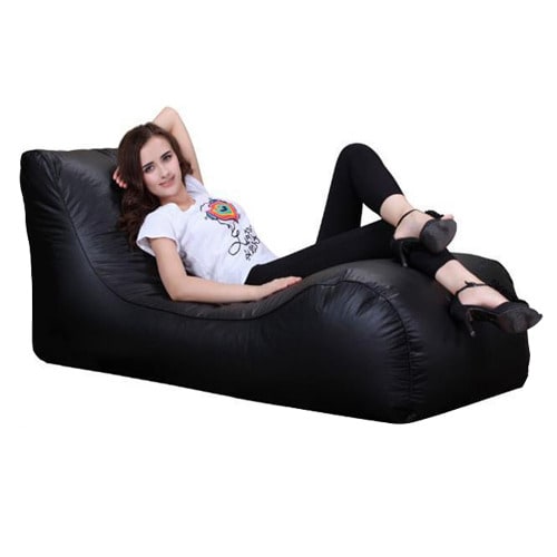 Contemporary Leather Bean Bag Chair Black - View Full
