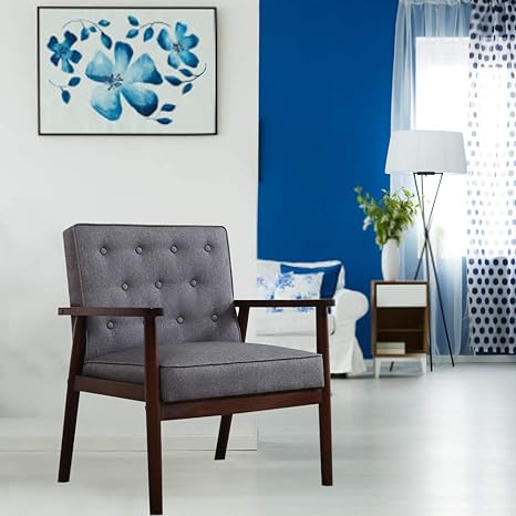 Mtfy Retro Modern Living Room Chair Solid Wooden Lounge Chair Fabric Upholstered Accent Armchair For Living Room Bedroom Comfy Single Sofa Chair - View Full