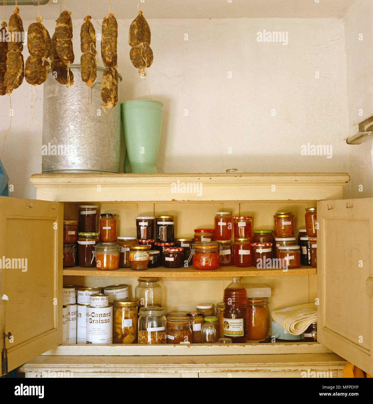 Food Cupboard Filled With Jars Of Preserves And Tins Stock - View Full