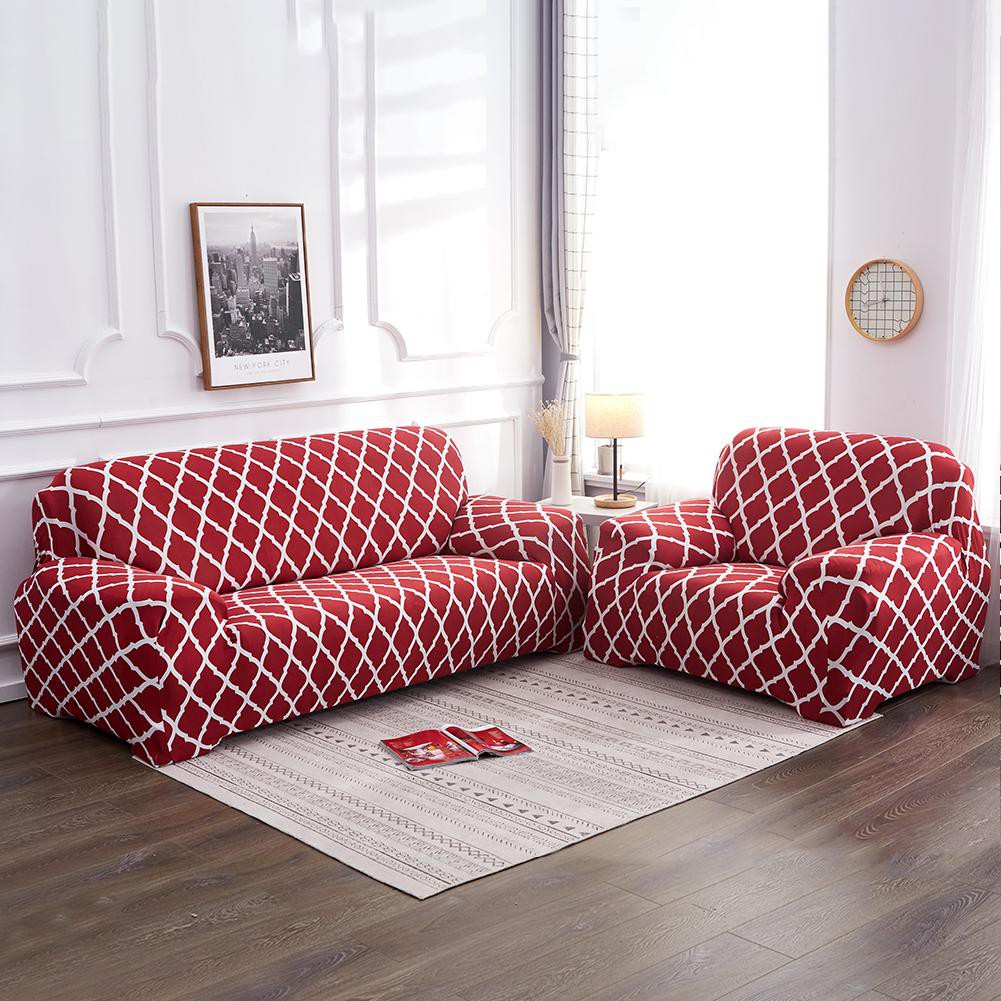 Rtmodern Geometry Stretch Tight Wrap Slipcover All Inclusive Sofa Couch Cover Wine Red - View Full