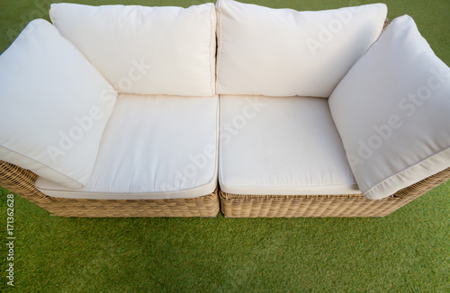 Modern Fabric Sofa Top View In The Garden Background - View Full