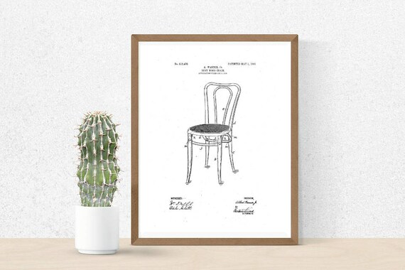 Bent Wood Chair 1906 Original Patent Print Blueprint Drawing 1900s Vintage Wall Art Poster Furniture Gift Printable Instant Digital Download - View Full