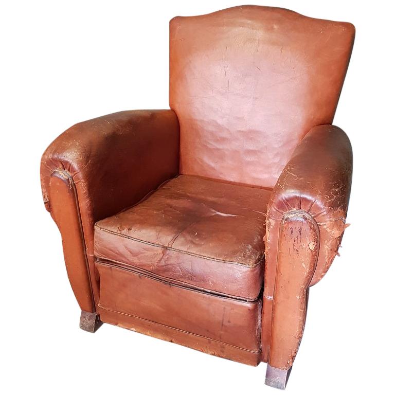 Old French Leather Lounge Chair From The 1930s 1940s - View Full