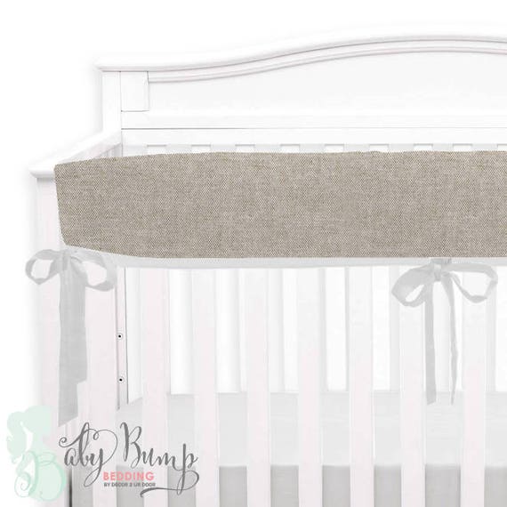 Tan White Linen Gender Neutral Baby Crib Rail Cover Tan Rail Cover Linen Rail Guard Bumper Less Baby Bedding - View Full