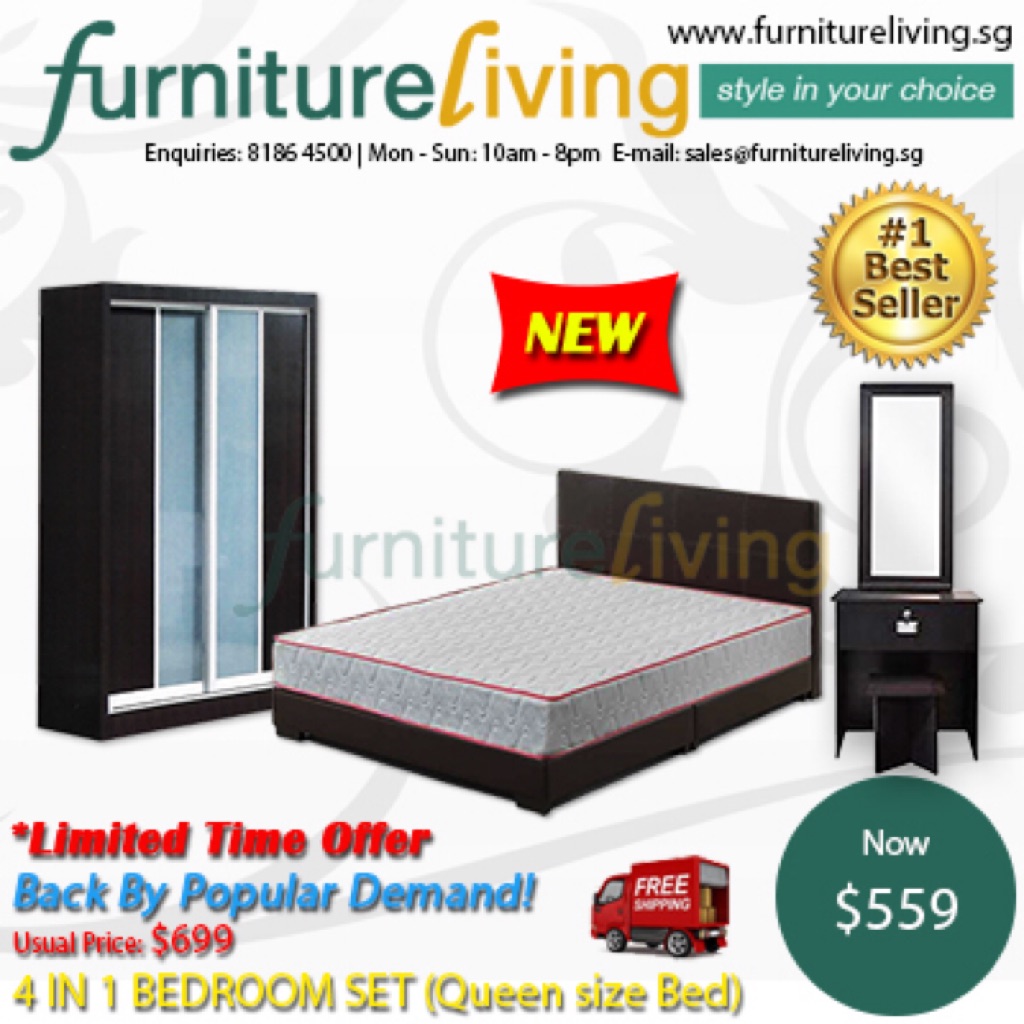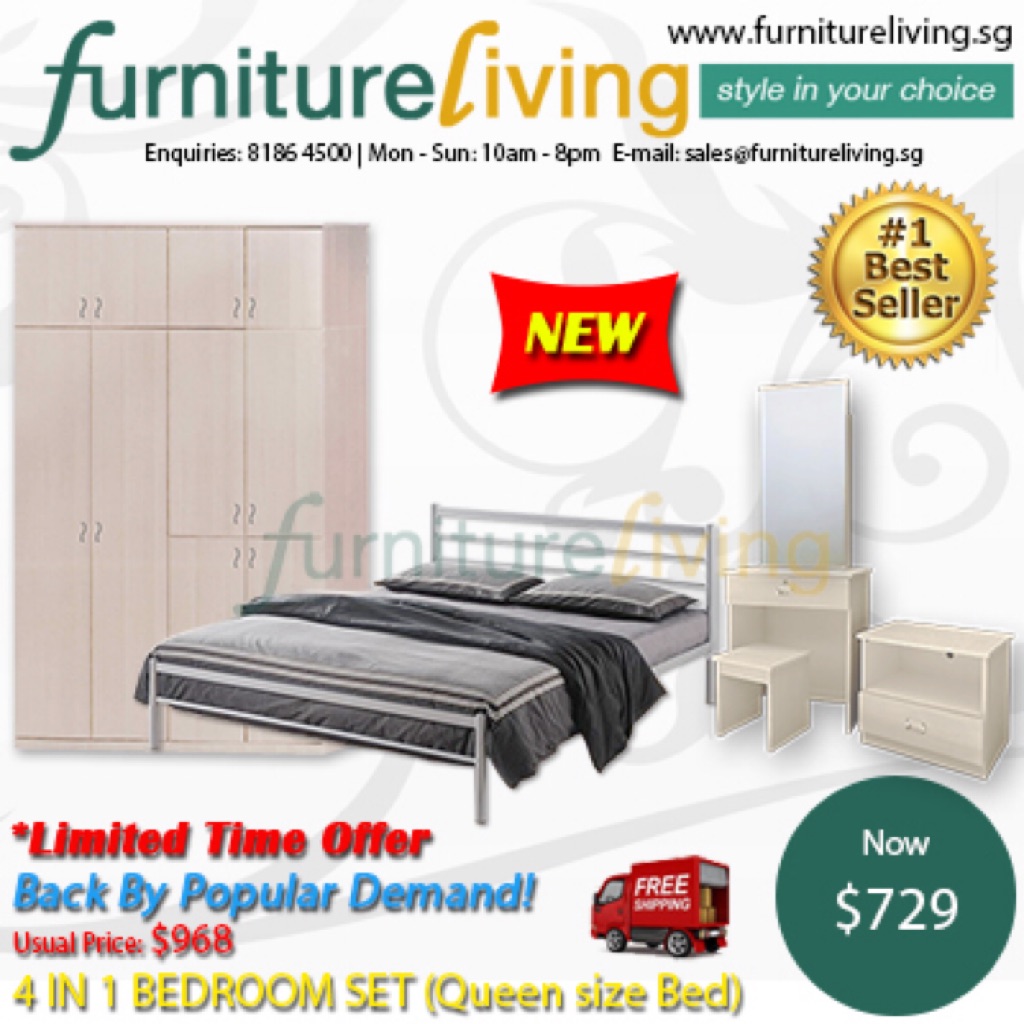 Furniture Living New 4 In 1 Bedroom Package Setbedframewardrobedresserstool - View Full
