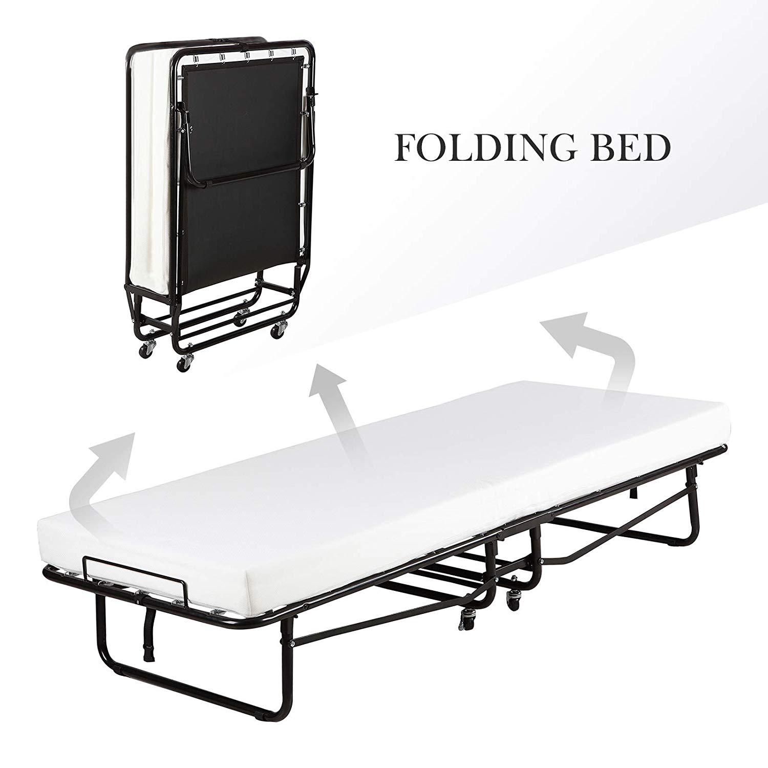 Details About Twin Size Rollaway Folding Metal Bed Frame Guest Bed W Memory Mattress Foldaway - View Full