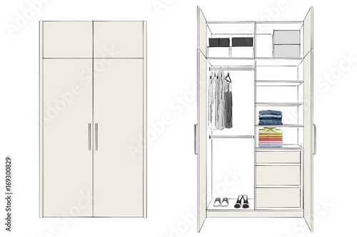 3d Rendering Wardrobe With Open Doors Isolated On White - View Full