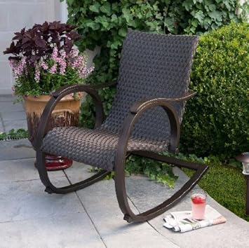 Sleek Hand Woven Outdoor All Weather Wicker Rocker Rocking - View Full