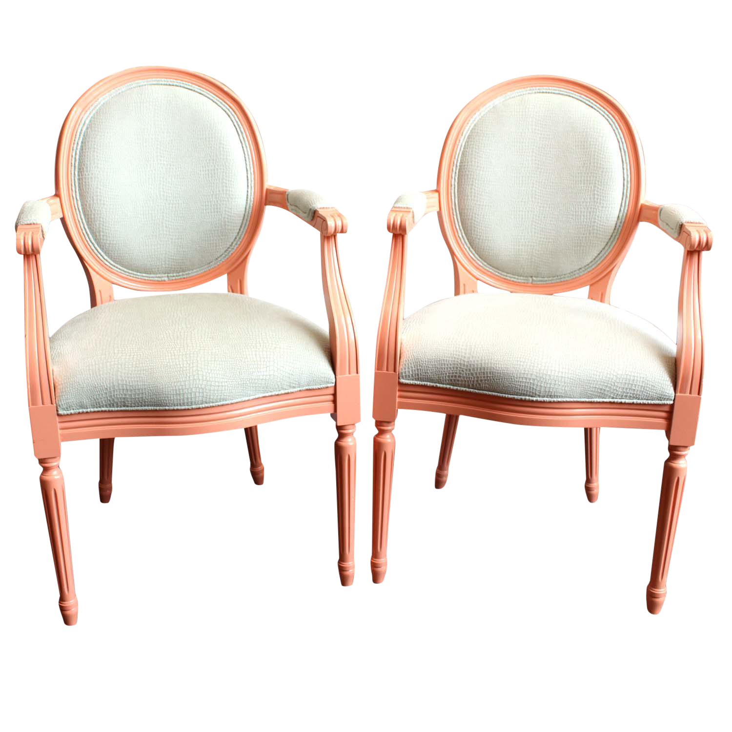Vintage Painted Louis Xvi Style Arm Chairs Pair - View Full